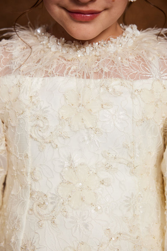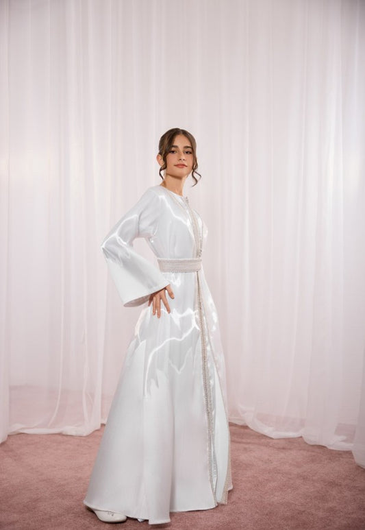 Scarlet Kids Pearl White Embroidered Luxe Kaftan