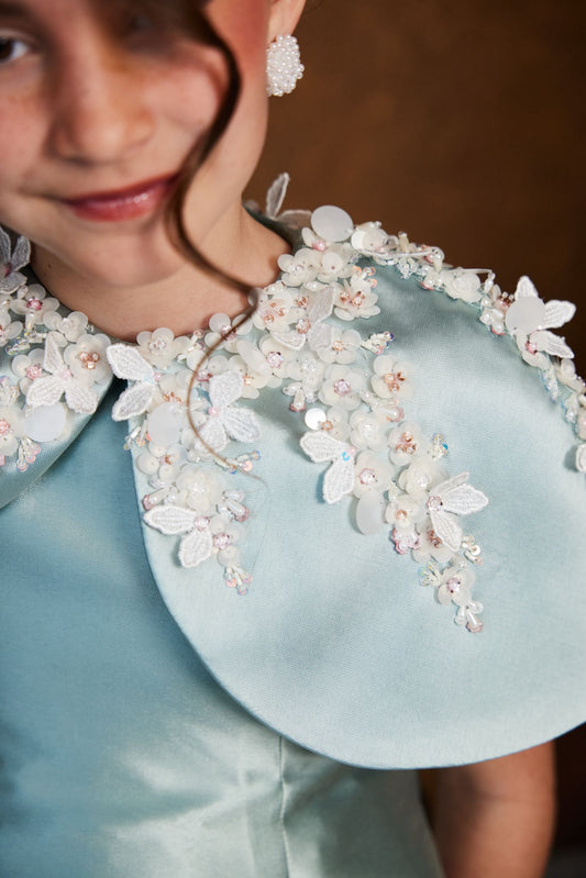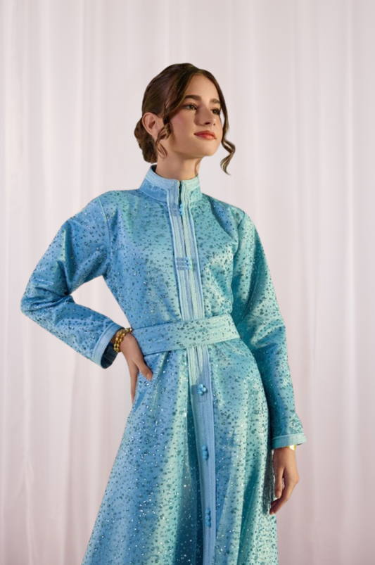 Scarlet Kids Sky-Blue Sequin Modest Kaftan