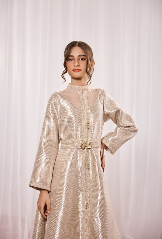 Scarlet Kids Gold Champaigne Brocade Jalabiya Kaftan