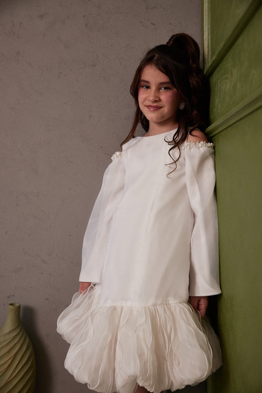 White Organza Ruffles Dress