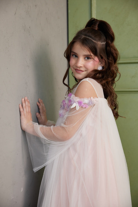 Offwhite Cape with Embroidery and Feathers