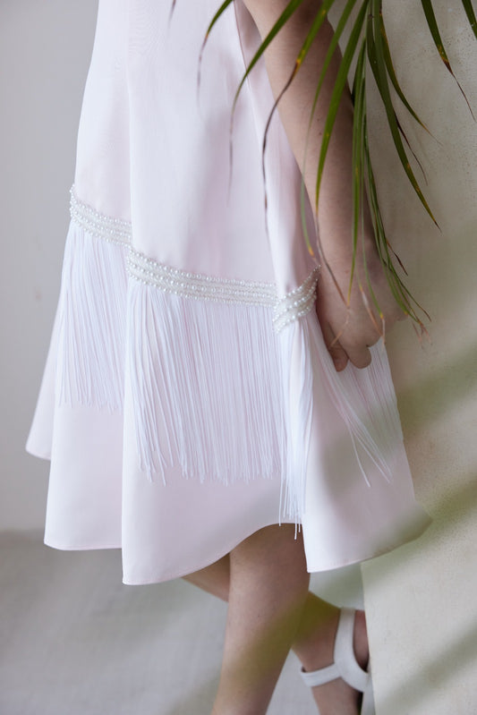 Short Sleeves Dress With Fringe Lace