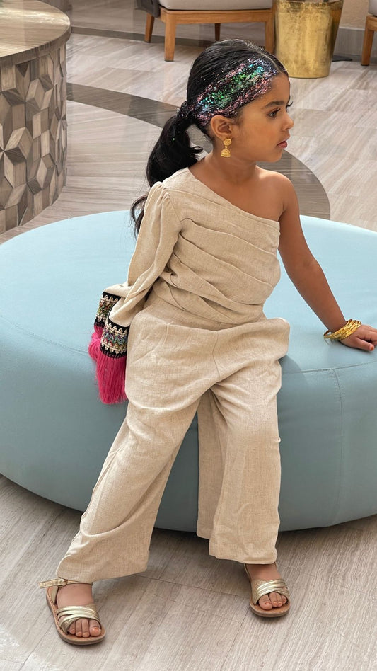 Asymmetric Brown Shoulder with One-Sided Sleeve Jumpsuit